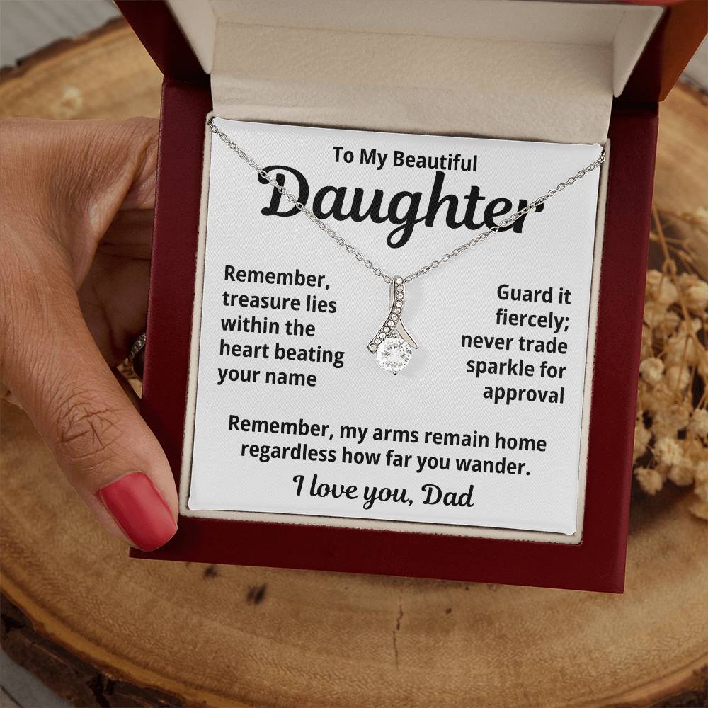To My Beautiful Daughter From Dad "Remember Treasure Lies..." Alluring Beauty Necklace