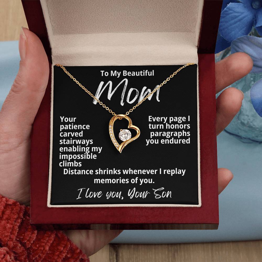 To My Beautiful Mom From Your Son "Your Patience Carved..." Forever Love Necklace