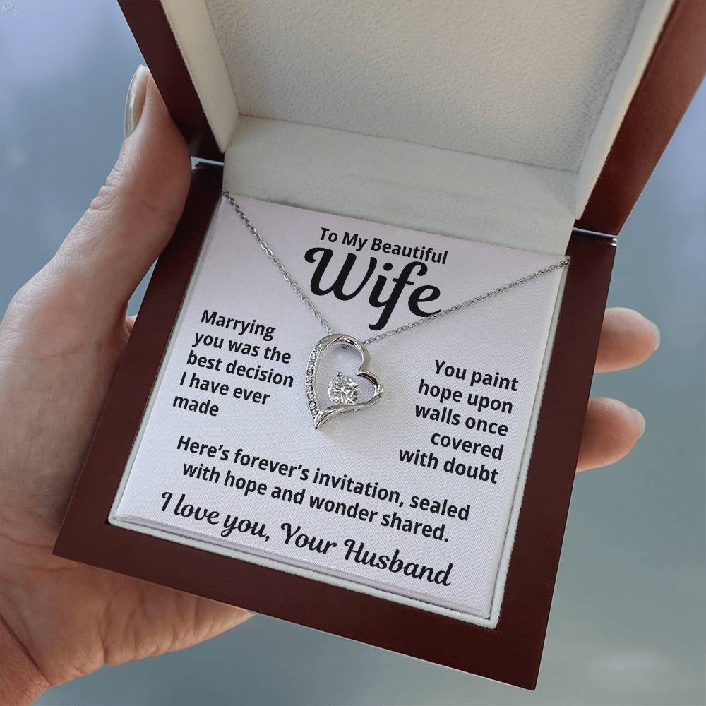 To My Beautiful Wife From Your Husband "Marrying You Was..." Forever Love Necklace